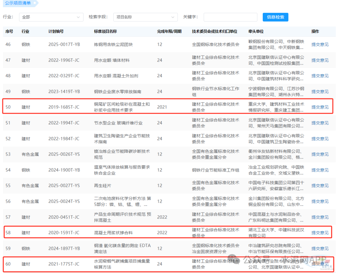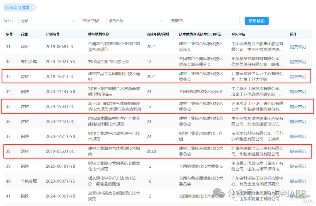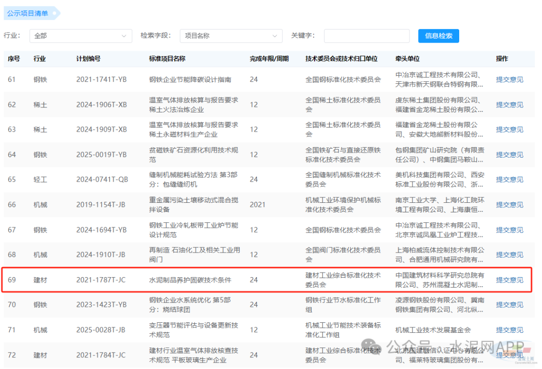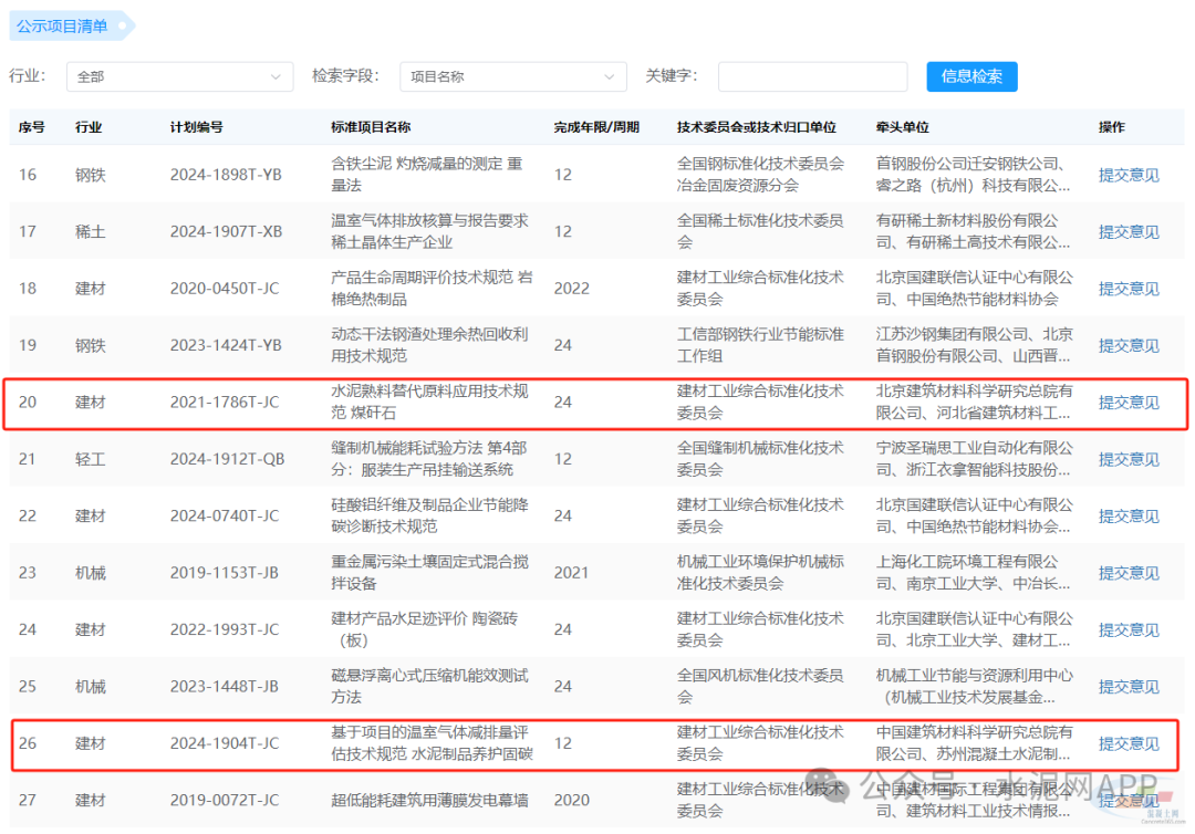 水泥制品養(yǎng)護(hù)固碳技術(shù)條件等被列入公示項(xiàng)目清單中。