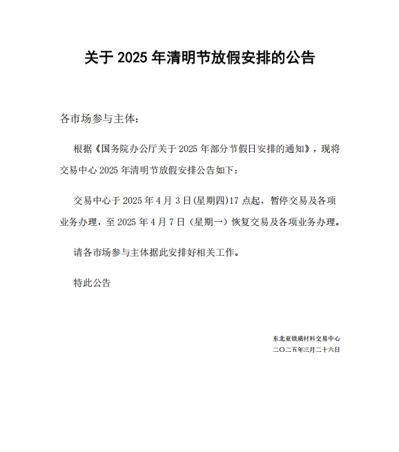 關于2025年清明節(jié)放假安排的公告